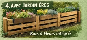 – Principe : Les palettes sont découpées pour créer une séparation basse autour des massifs.