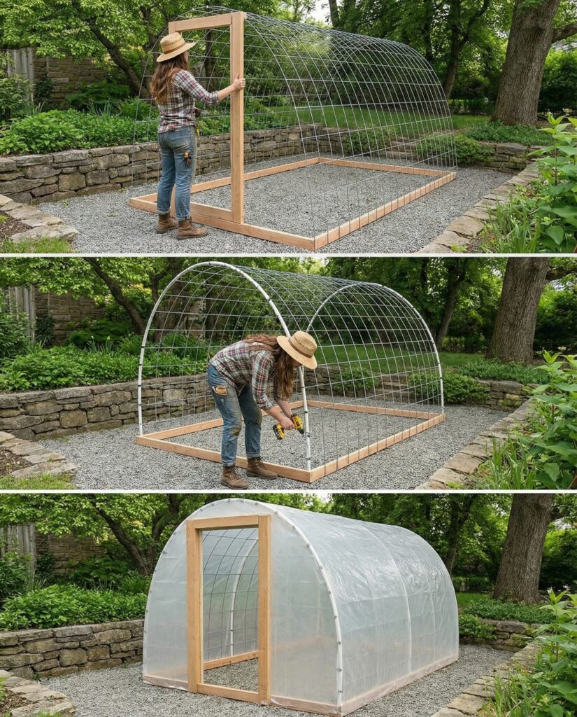 ✅ Astuce : la largeur dépend de la largeur de ton panneau grillagé et du cintrage. Plus le cadre est large, plus la serre est haute et “ronde”.
