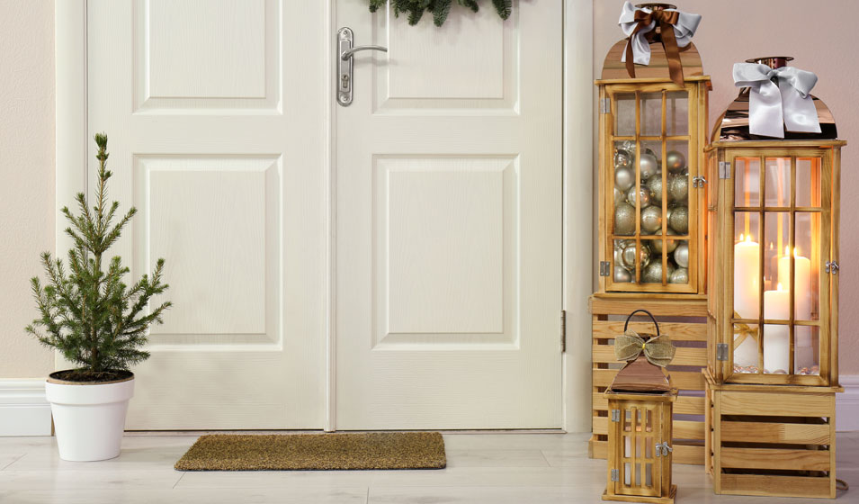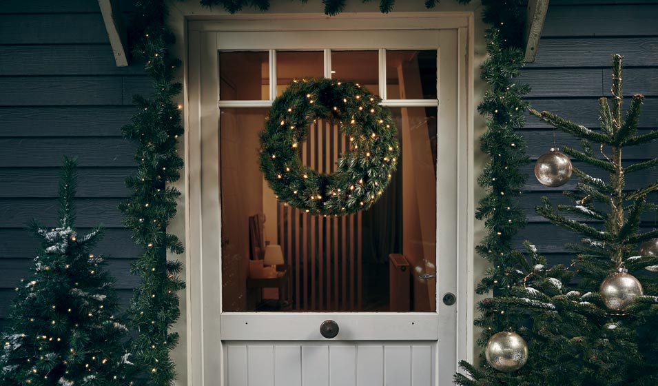 Et pour cela, rien de tel qu’une belle guirlande de pin fixée autour du cadre de la porte d’entrée.
