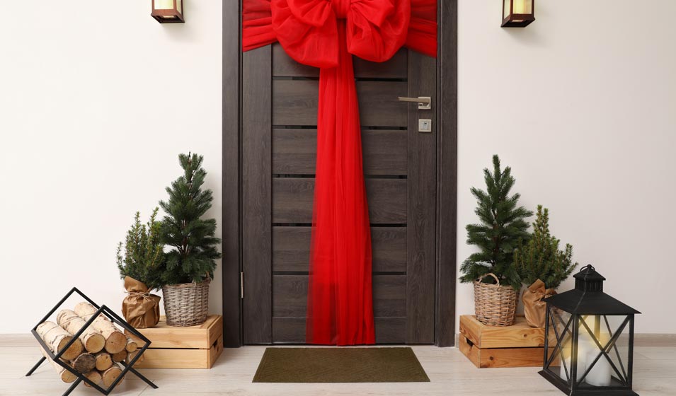 Pour une déco vraiment festive dès l’entrée, n’oubliez pas de décorer votre tour de porte !