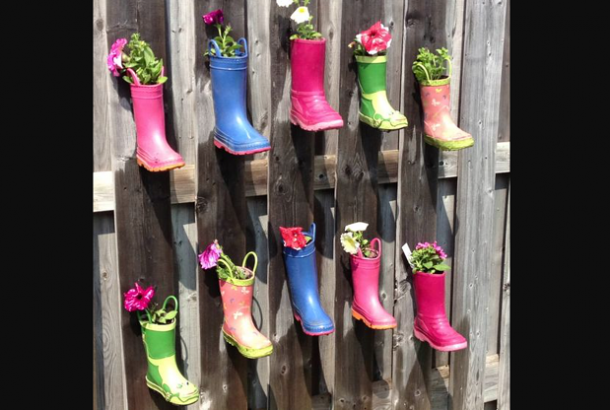 Des bottes pour enfants comme jardinières à suspendre !