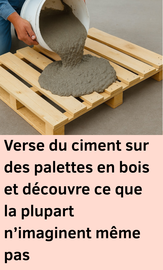 La vidéo montre comment une simple palette en bois — généralement destinée à être jetée — peut être transformée en une pièce solide et parfaitement fonctionnelle en y versant du ciment.
